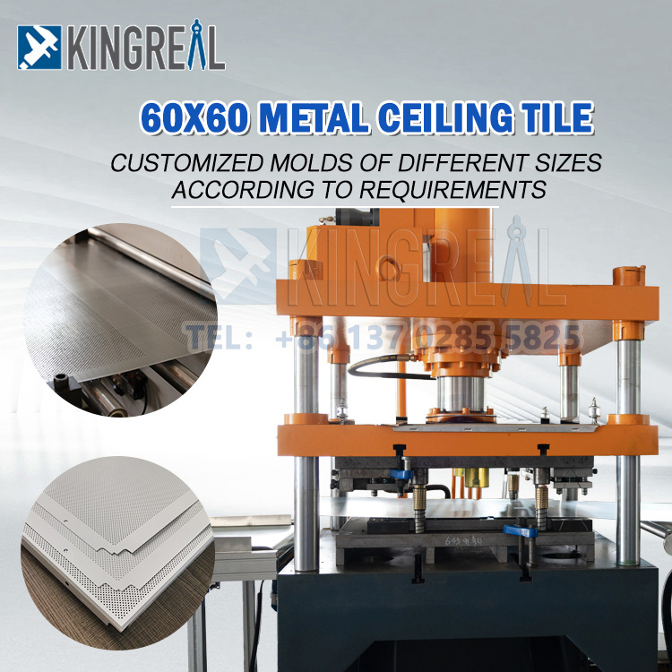 Линијата за перфорација на метални тавански плочки KINGREAL STEEL SLITTER може да произведе различни спецификации на перфорирани тавани како што се 300x300mm, 600x600mm, 1200x600mm итн., кои се широко користени во проектите за украсување.